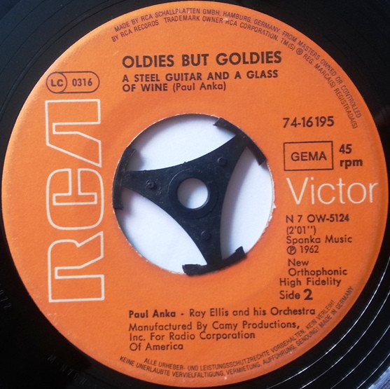 Paul Anka – Love Me Warm And Tender / A Steel Guitar And A Glass Of Wine (7″, Single, Mono, RP)