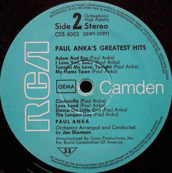 Paul Anka – Paul Anka’s Greatest Hits (LP, Comp)
