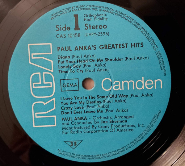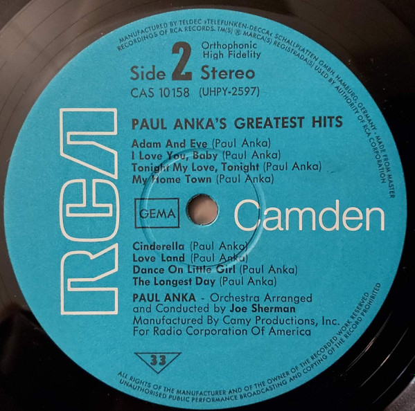 Paul Anka – Paul Anka’s Greatest Hits (LP, Comp)