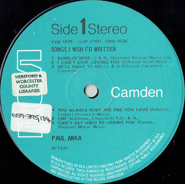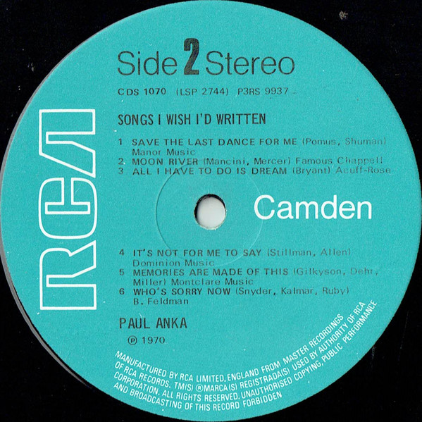 Paul Anka – Songs I Wish I’d Written (LP, RE)