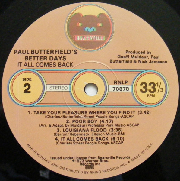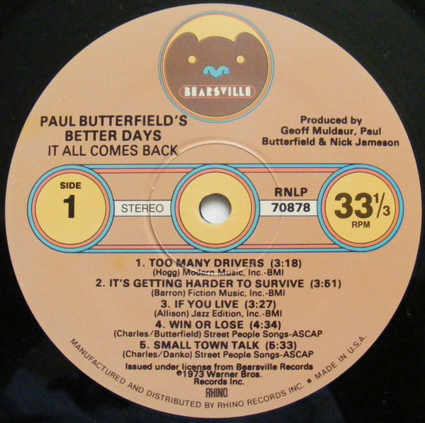 Paul Butterfield’s Better Days – It All Comes Back (LP, Album, RE)