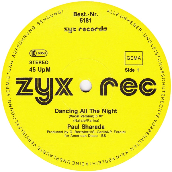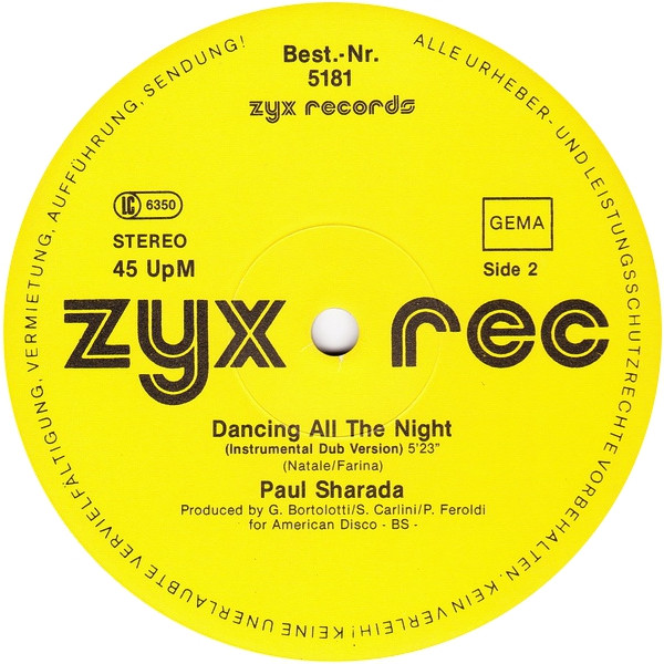 Paul Sharada – Dancing All The Night (12″, Maxi)