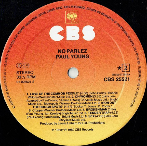 Paul Young – No Parlez (LP, Album, Sun)