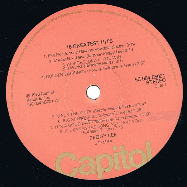 Peggy Lee – 16 Greatest Hits (LP, Comp)