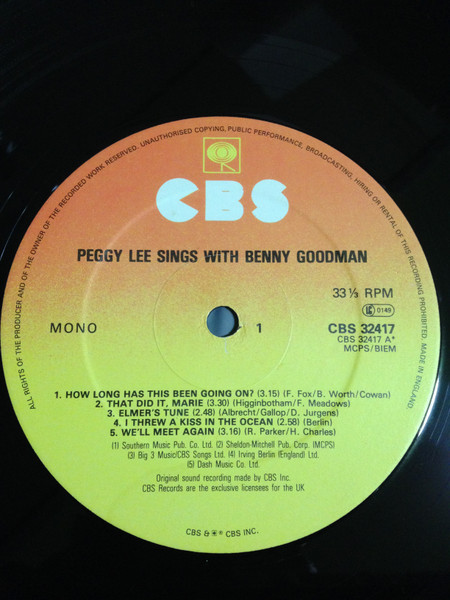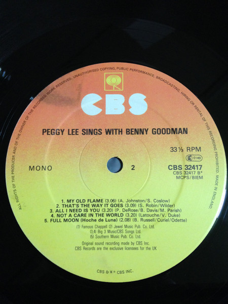 Peggy Lee And Benny Goodman – Peggy Lee Sings With Benny Goodman (LP, Comp)