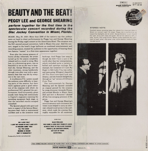 Peggy Lee / George Shearing – Beauty And The Beat! (LP, Album, RE)