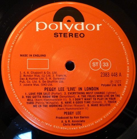 Peggy Lee – Live In London (LP, Album)