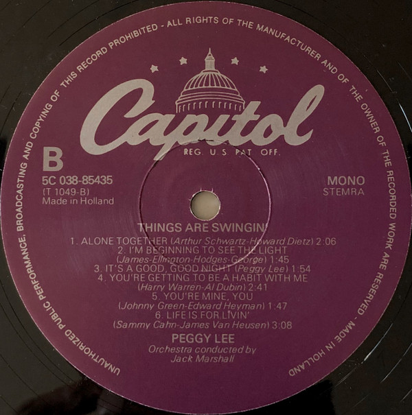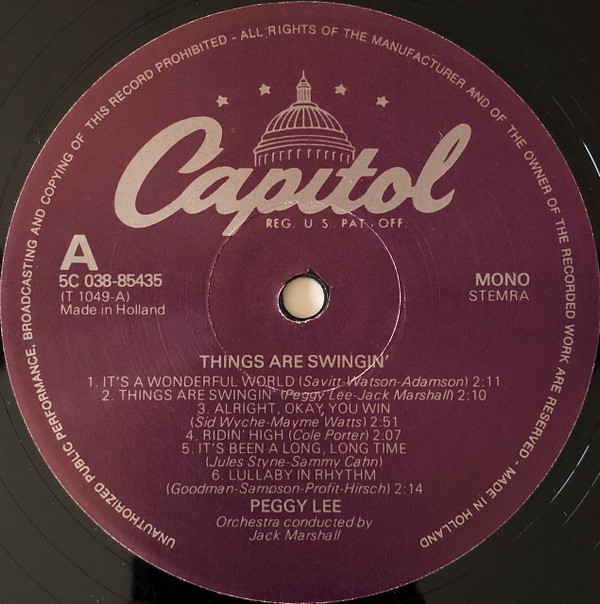 Peggy Lee – Things Are Swingin’ (LP, Album, Mono, RE)