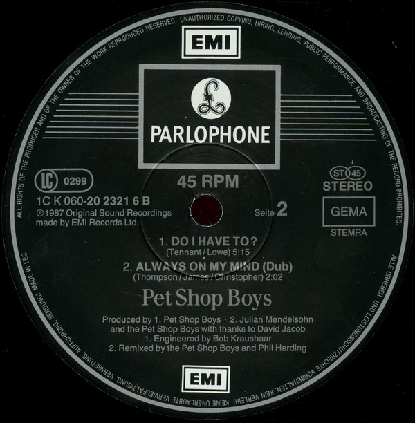 Pet Shop Boys – Always On My Mind (Remix) (12″, Single)