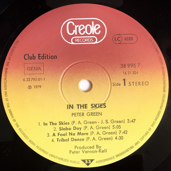 Peter Green (2) – In The Skies (LP, Album, Club, Gat)