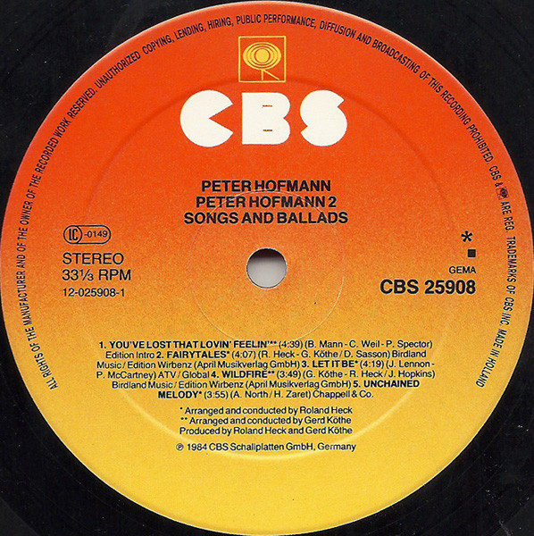 Peter Hofmann – Peter Hofmann 2 (Ivory Man / Songs & Ballads) (LP, Album)