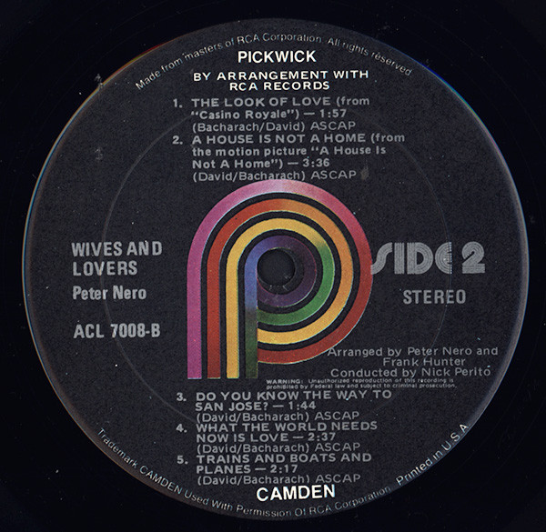 Peter Nero – Wives And Lovers (LP, Album, RE)