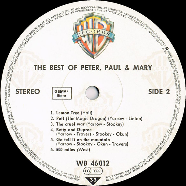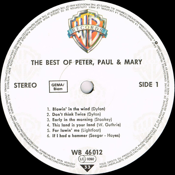 Peter, Paul & Mary – The Best Of Peter, Paul And Mary (LP, Comp, RE)