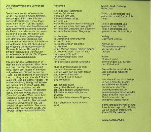 PeterLicht – Die Transsylvanische Verwandte Ist Da // Heiterkeit (Musik Und Film) (CD, Single, Enh)