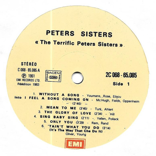 Peters Sisters Feat Virginia Vee With Geoff Love & His Orchestra With The Williams Singers – The Terrific Peters Sisters (LP, Album, RE)