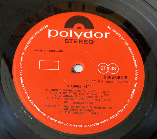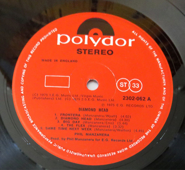 Phil Manzanera – Diamond Head (LP, Album, RE)