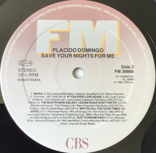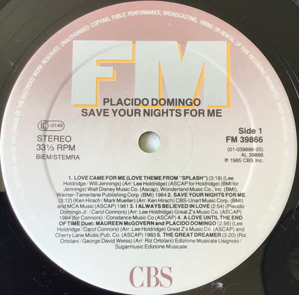 Placido Domingo – Save Your Nights For Me (LP, Album)
