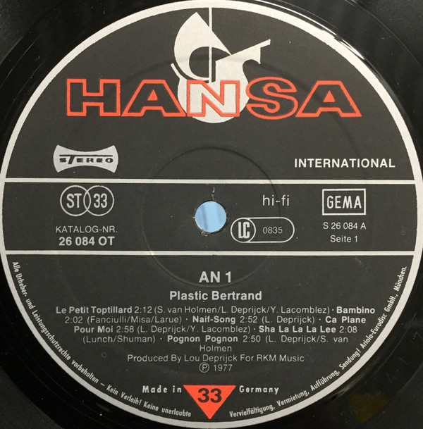 Plastic Bertrand – An 1 (LP, Album, Gat)