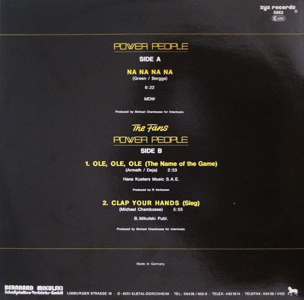 Power People / The Fans – Na Na Na Na / Clap Your Hands (Sieg) / Ole, Ole Ole (The Name Of The Game) (12″)