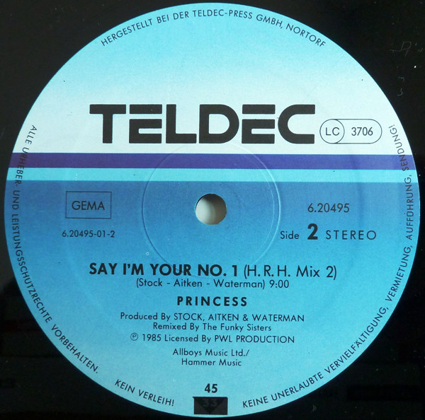 Princess – Say I’m Your No. 1 (12″, Maxi)