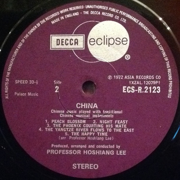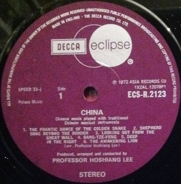 Professor Hoshiang Lee – China (Chinese Music Played With Traditional Chinese Musical Instruments) (LP, Album)