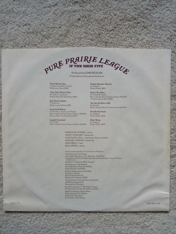 Pure Prairie League – If The Shoe Fits (LP, Album, RE, Ind)