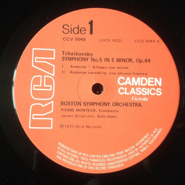 Pyotr Ilyich Tchaikovsky, Boston Symphony Orchestra, Pierre Monteux – Symphony No. 5 In E Minor (LP, Album, RE)