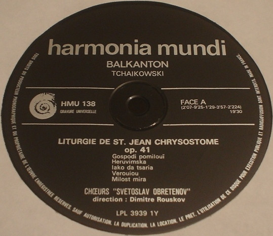Pyotr Ilyich Tchaikovsky – Bulgarian National Choir ‘Svetoslav Obretenov’ / Dimitre Rouskov – Liturgie De Saint Jean Chrysostome (LP, Album, RE)