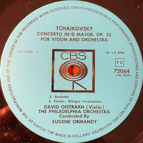 Pyotr Ilyich Tchaikovsky, David Oistrach / Eugene Ormandy, The Philadelphia Orchestra – Violin Concerto In D (LP)