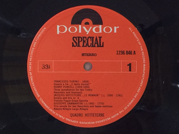 Quadro Hotteterre – Music For Recorders (LP, Album)