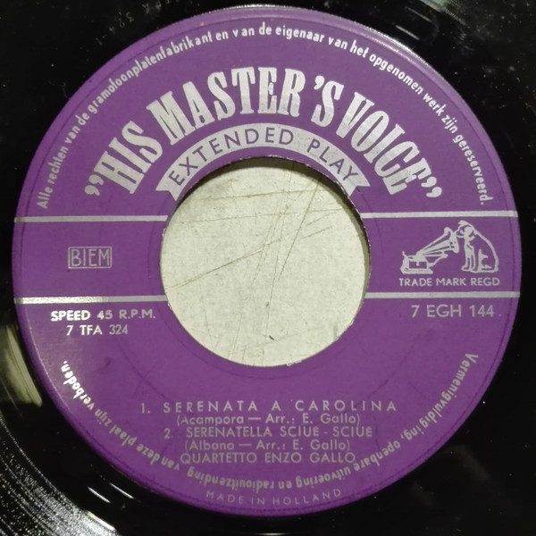 Quartetto Enzo Gallo – Fischia Il Treno (7″, EP)