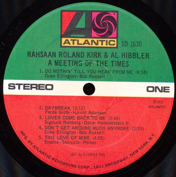 Rahsaan Roland Kirk* & Al Hibbler – A Meeting Of The Times (LP, Album, Pre)
