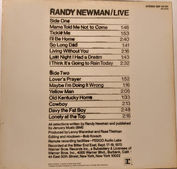 Randy Newman – Live (LP, Album)