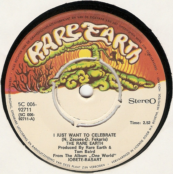 Rare Earth – I Just Want To Celebrate (7″, Single, Ora)