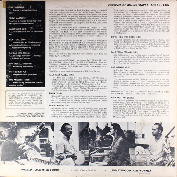 Ravi Shankar – Portrait Of Genius (LP, Album, Mono)