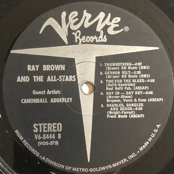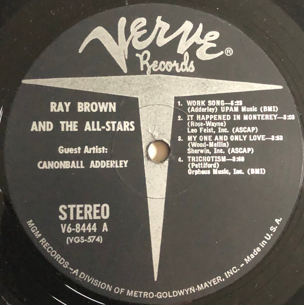 Ray Brown All-Star Big Band Guest Artist Cannonball Adderley – With The All-Star Big Band (LP, MGM)