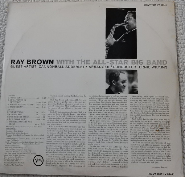 Ray Brown / Cannonball Adderley – Ray Brown, His Bass, His Big Band + Cannonball Adderley (LP)
