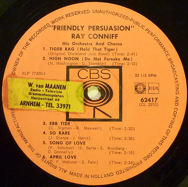 Ray Conniff And His Orchestra & Chorus – Friendly Persuasion (LP, Album, Mono)
