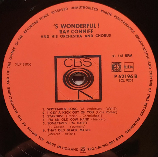 Ray Conniff And His Orchestra & Chorus – ‘S Wonderful ! (LP, Album, Mono)