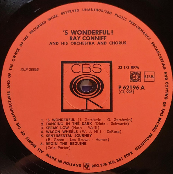 Ray Conniff And His Orchestra & Chorus – ‘S Wonderful ! (LP, Album, Mono)