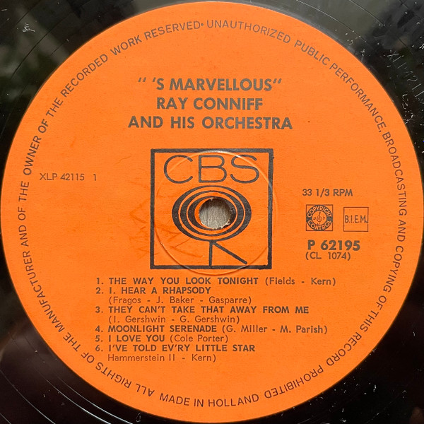 Ray Conniff And His Orchestra* – ‘S Marvelous (LP, Album, Mono)