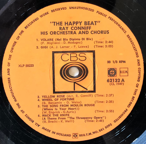 Ray Conniff His Orchestra And Chorus* – The Happy Beat (LP, Album, Mono)