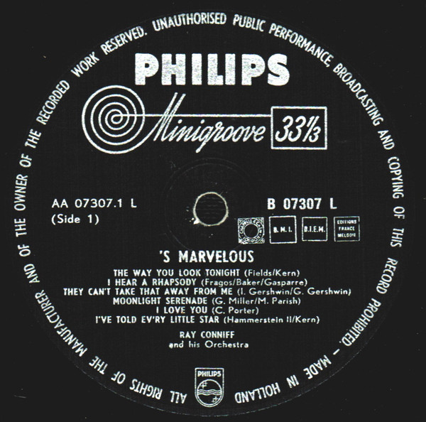Ray Conniff & His Orchestra – ‘S Marvelous! (LP, Album, Mono)