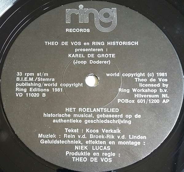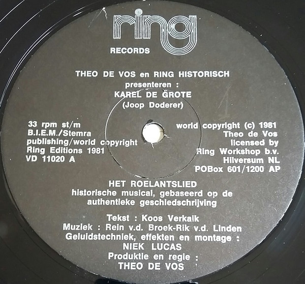 Rein van den Broek, Rik van de Linden, Koos Verkaik – Karel de Grote, Het Roelantslied (LP, Album, Gat)