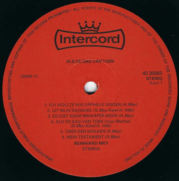 Reinhard Mey – Als De Dag Van Toen (LP, Album)