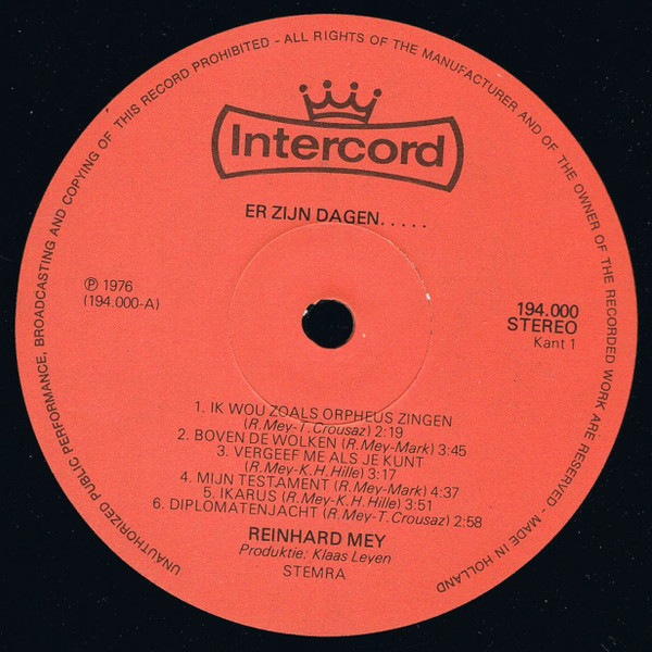Reinhard Mey – Er Zijn Dagen…. (LP, Album)
