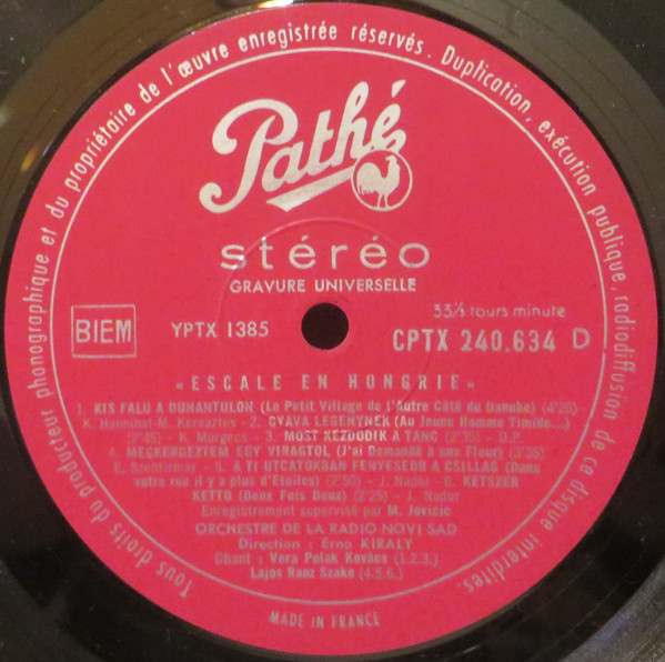 Revijski Orkestar RTV Novi Sad – Escale En Hongrie (LP, Album)
