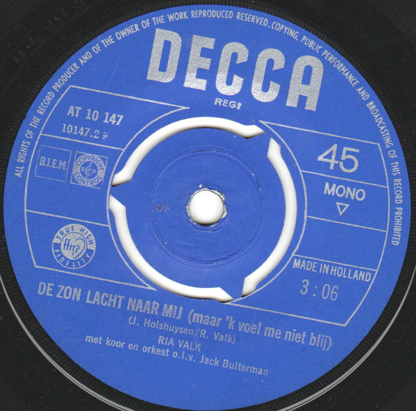 Ria Valk – Fernando, Alfredo En José (Santo Domingo) / De Zon Lacht Naar Mij (7″, Single, Mono)