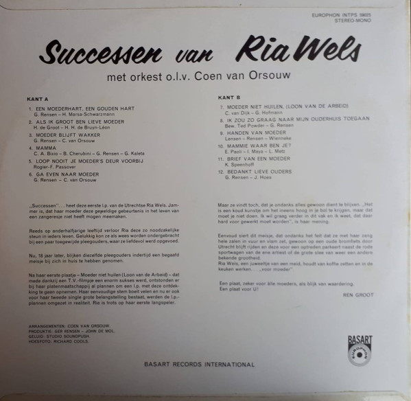 Ria Wels – Successen Van Ria Wels (LP)