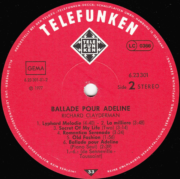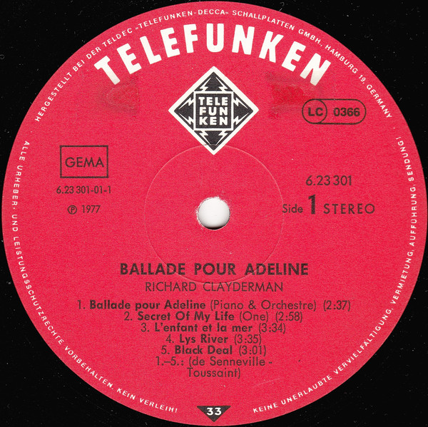 Richard Clayderman – Ballade Pour Adeline (LP, Album)